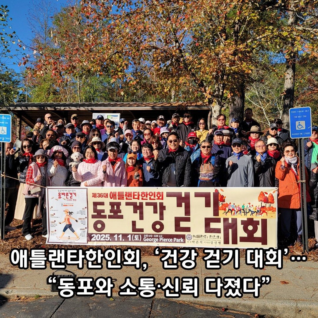 제36대 애틀랜타한인회(회장 박은석)가 주최한 ‘동포 건강 걷기 대회’가 지난 1일(토) 오전 9시부터 오후 1시까지 스와니의 조지 피어스 파크(George Pierce Park)에서 120여 명의 한인 동포들이 참여한 가운데 성황리에 열렸다.